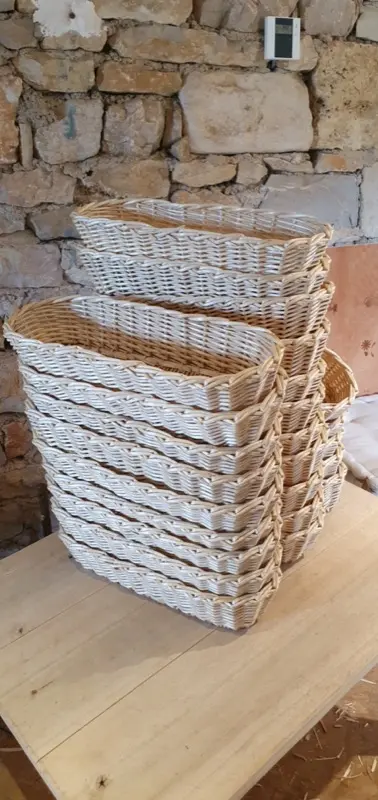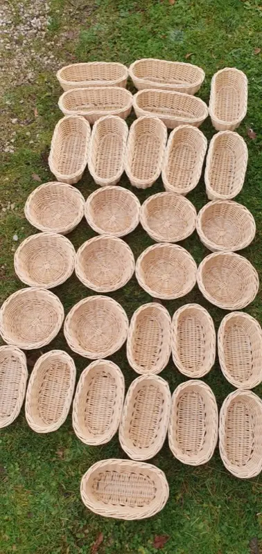 Je fabrique des vanneries sur mesure pour différents métiers : bannetons (entoilés ou non) pour les boulangers, corbeilles de présentation pour maraichers, panières de présentation pour fleuristes, nasse anguillère ou nasse à poisson pour pêcheurs… J’étudie avec vous vos besoins et vous propose un prototype si besoin. Mes fabrications sont robustes pour vous accompagner dans vos activités durant de longues années.