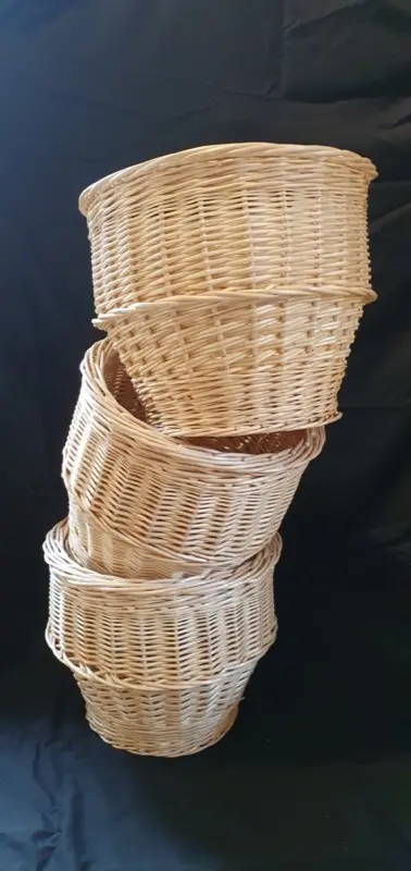 Je fabrique des vanneries sur mesure pour différents métiers : bannetons (entoilés ou non) pour les boulangers, corbeilles de présentation pour maraichers, panières de présentation pour fleuristes, nasse anguillère ou nasse à poisson pour pêcheurs… J’étudie avec vous vos besoins et vous propose un prototype si besoin. Mes fabrications sont robustes pour vous accompagner dans vos activités durant de longues années.