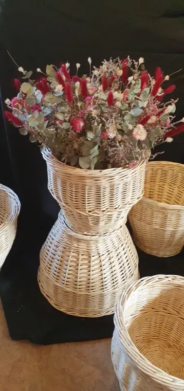 Panières de fleuristes en osier blanc – Présentation de fleurs séchées