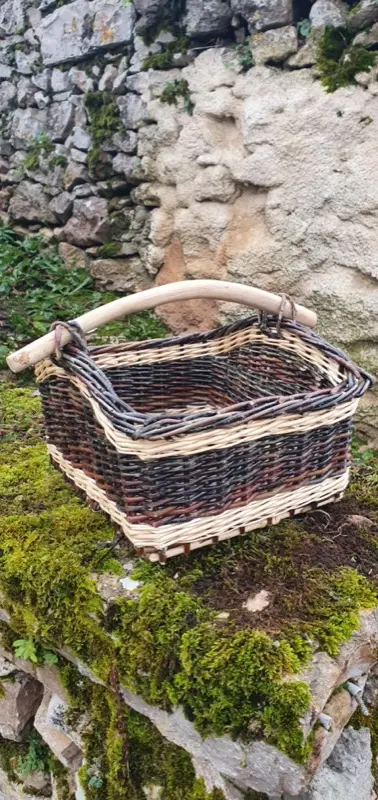 Panier conique en osier brut avec anse en bois poncé