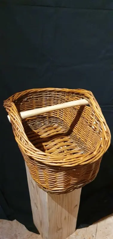 Panier de récolte, à champignons ou panier de marché, panier à commissions – osier brut et anse en bois poncé
