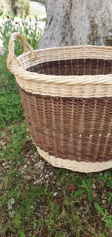 Grande corbeille en osier brut – bord en vagues