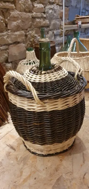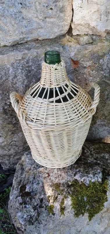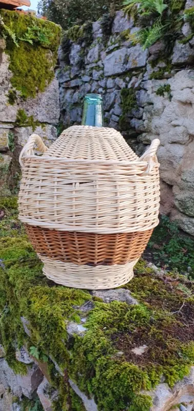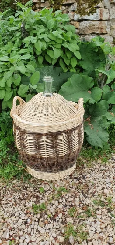Habillage de bonbonne ou dame jeanne en osier blanc et brut